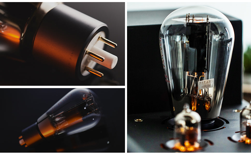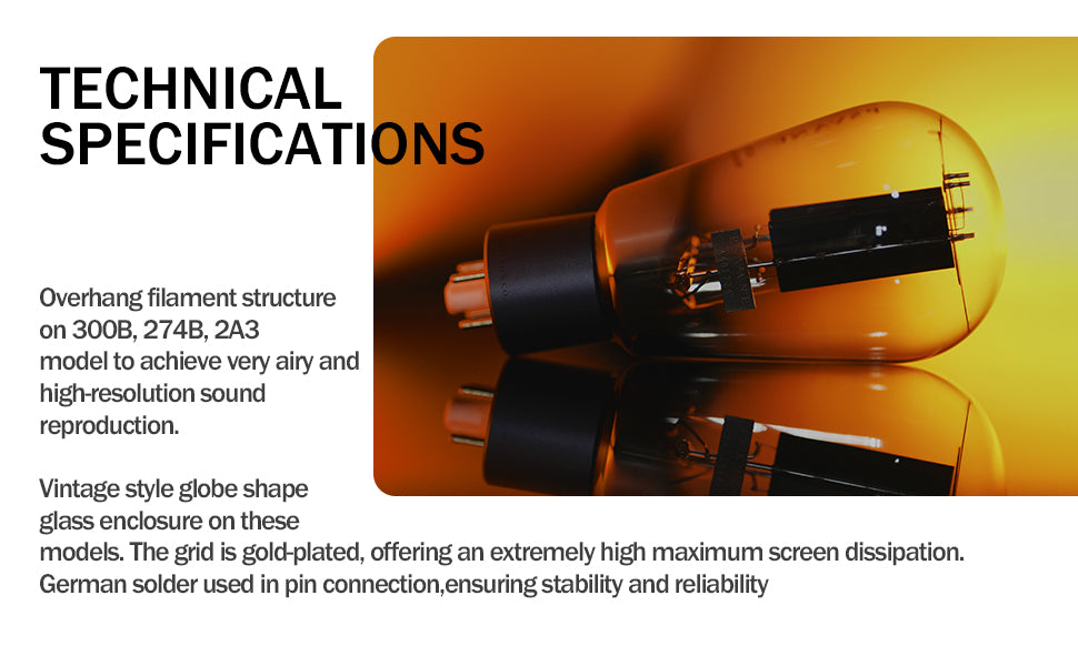 - Vintage style globe shape glass enclosure on tube amplifier of ACME 274B model. The grid is gold-plated, offering an extremely high maximum screen dissipation. German solder used in pin connection, ensuring stability and reliability.