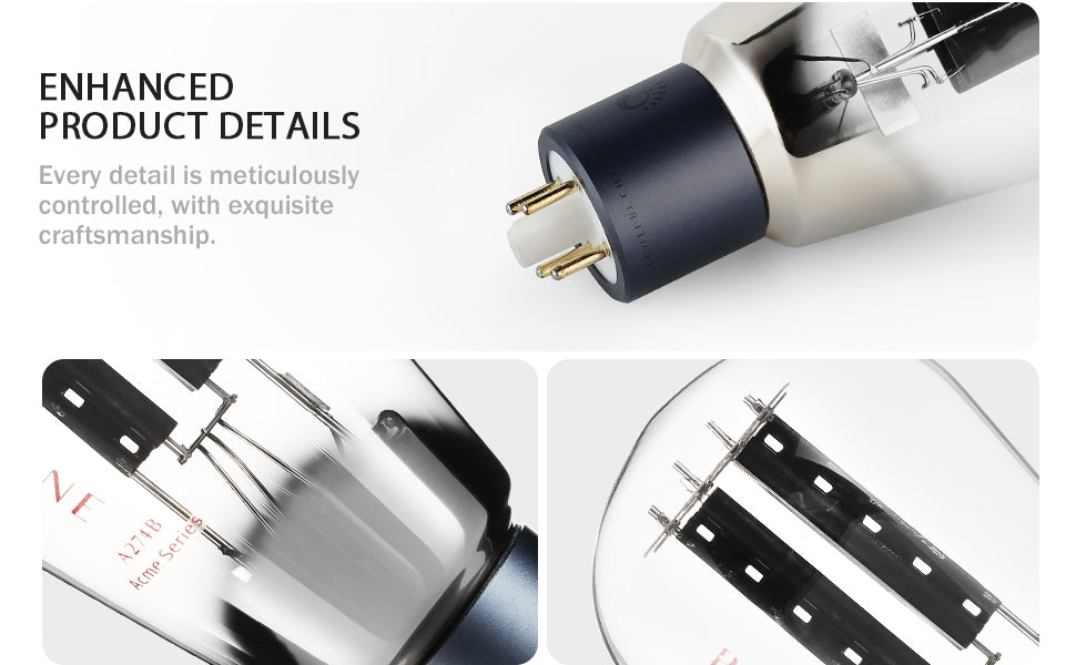 - To ensure the high quality of the products, the glass envelope, tube base, and internal structure are created using stringent manufacturing processes. With careful parameter screening, only the top 5% to 3% of a batch of finished products can be selected to become part of the A series, which is ultimately presented to you.