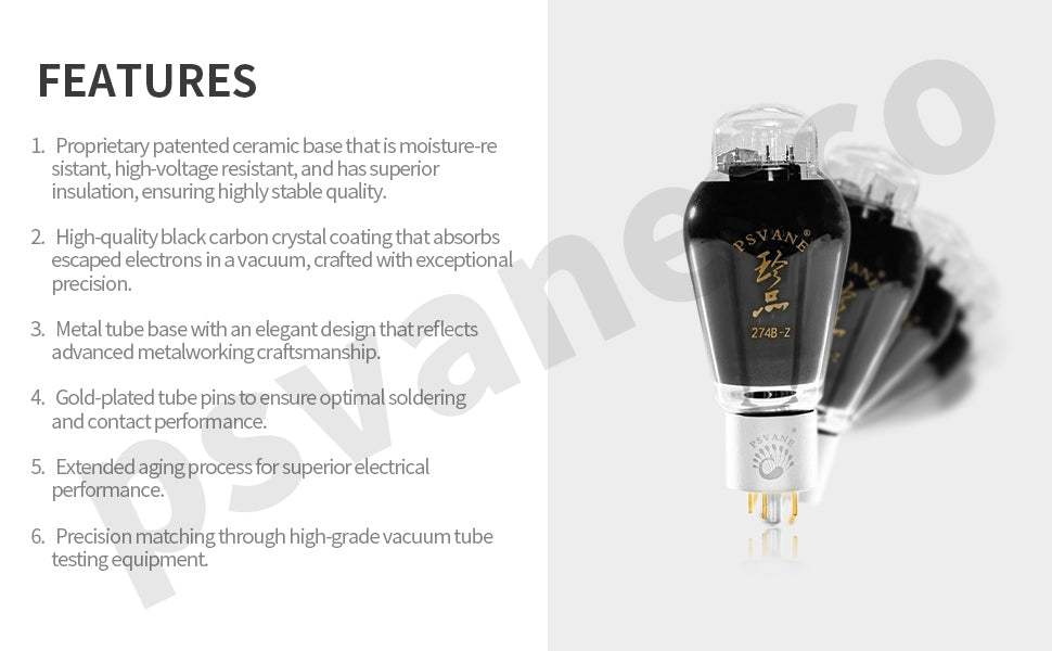 PSVANE Treasure 274B rectifier tube provides stable power delivery with warm, refined sound, ensuring reliability for high-end audio systems.