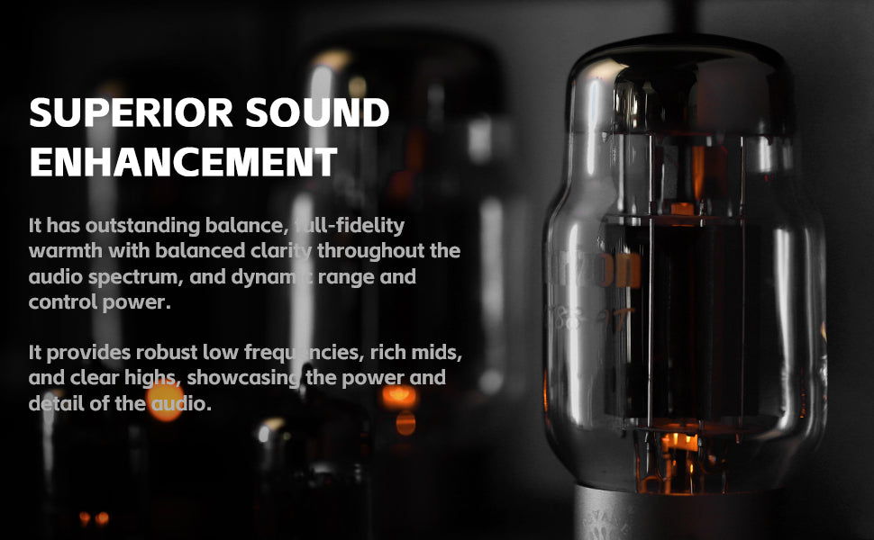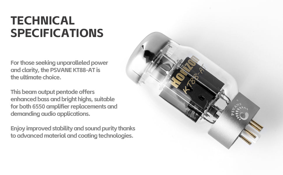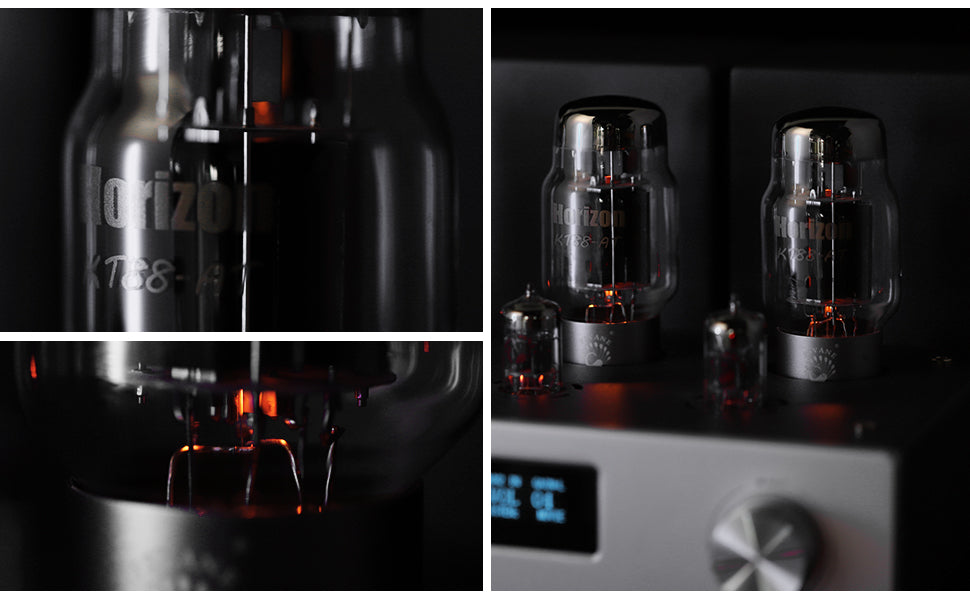 The KT88 delivers a rich, warm tonal character with deep bass, smooth mids, and a crisp, detailed high end.