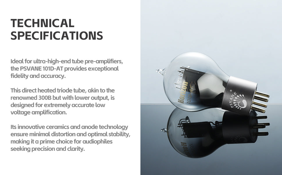 - The PSVANE 101D-AT stands out with its special shaped balloon glass envelope, engineered to improve thermal dissipation, and maintain a superior vacuum for enhanced sound quality. This beam power tetrode delivers powerful, tube-untypical bass, making it an outstanding choice for audiophiles and professional users alike. With advanced ceramics and anode technology, this tube offers a significant boost in power and stability, perfect for demanding audio applications.