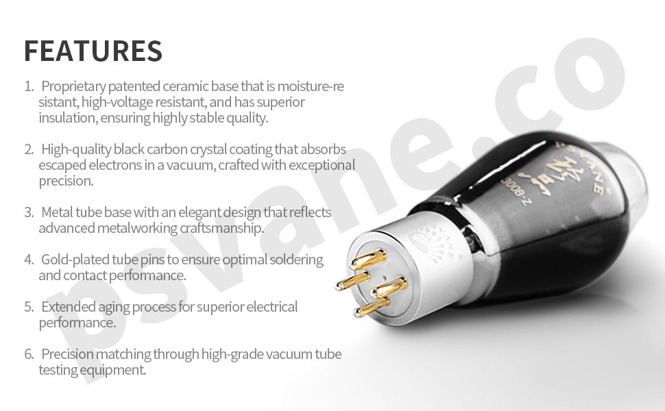 PSVANE Treasure 300B vacuum tube provides warm, detailed tones with robust stability, making it ideal for high-fidelity and audiophile-grade amplifiers.